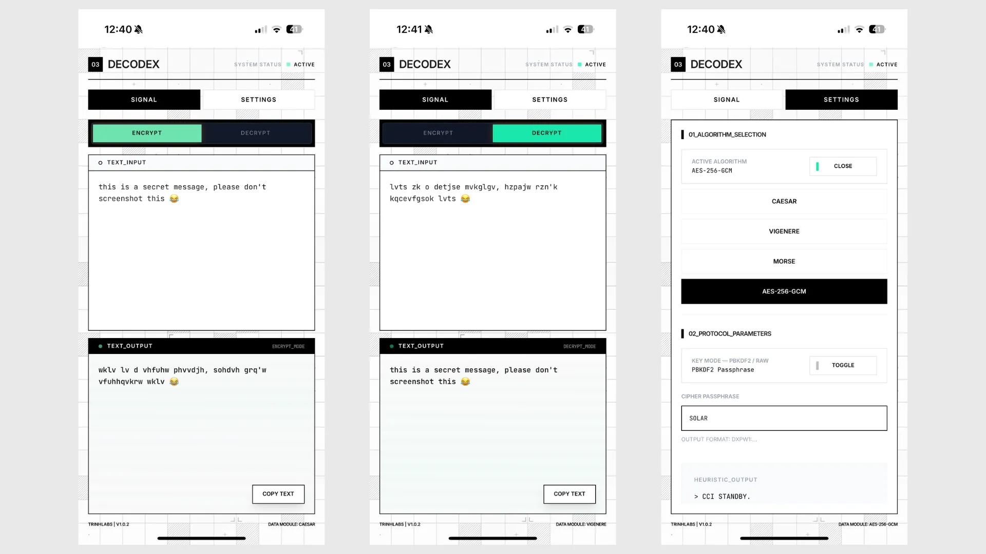 Decodex is built as a focused private utility rather than a social or cloud-based messaging product.