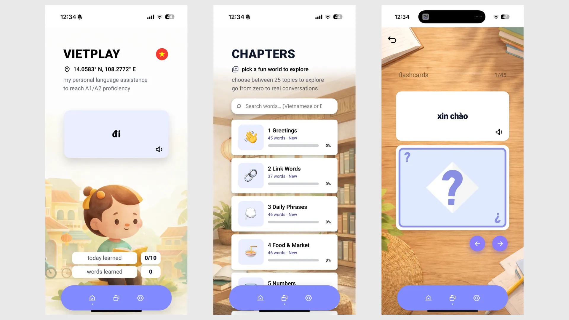 • VietPlay, a Vietnamese learning app centered on high-frequency vocabulary, flashcards, and realistic pronunciation